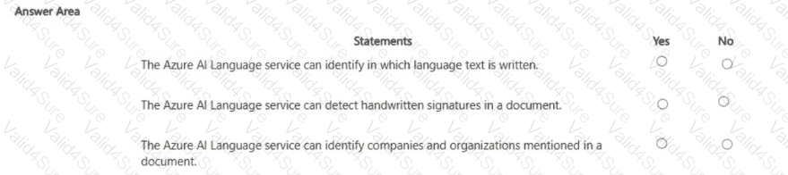 For each of The following statements, select Yes if the statement is true. Otherwise, select No.