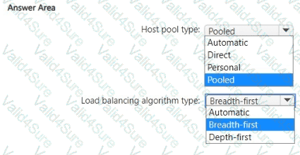 Which type of host pool and load balancing algorithm should you configure to meet the performance requirements? To answer, select the appropriate options in The answer area.