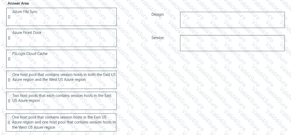 Which host pool design and which service should you configure to meet the disaster recovery requirements? To answer, drag the appropriate solution to the correct requirements. Each solution may be used once, more than once, or not at all. You may need to drag the split bar between panes or scroll to view content