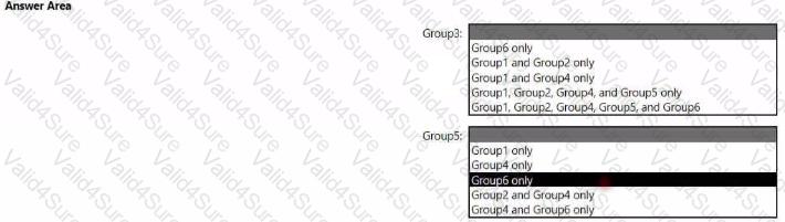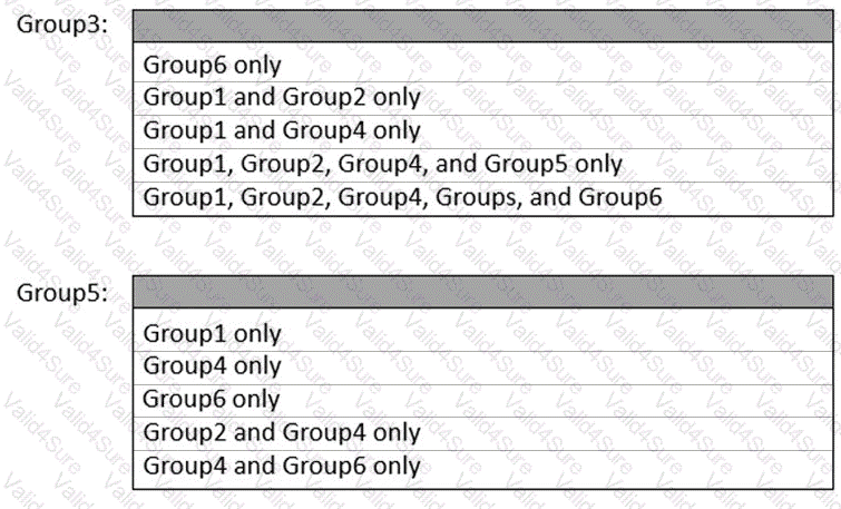 Which groups can you add to Group3 and Group5? To answer, select the appropriate options in the answer area.