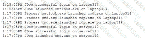 A SOC analyst received an alert about a potential compromise and is reviewing the following SIEM logs: