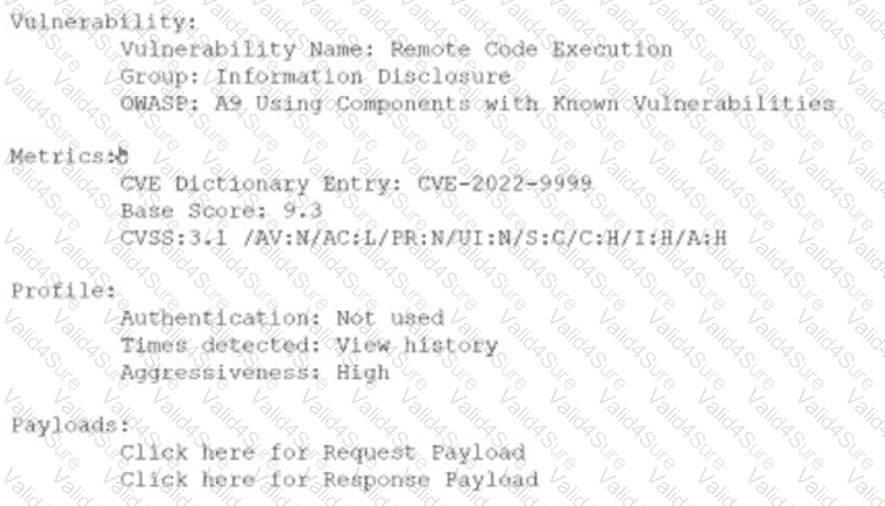 An analyst is evaluating the following vulnerability report: