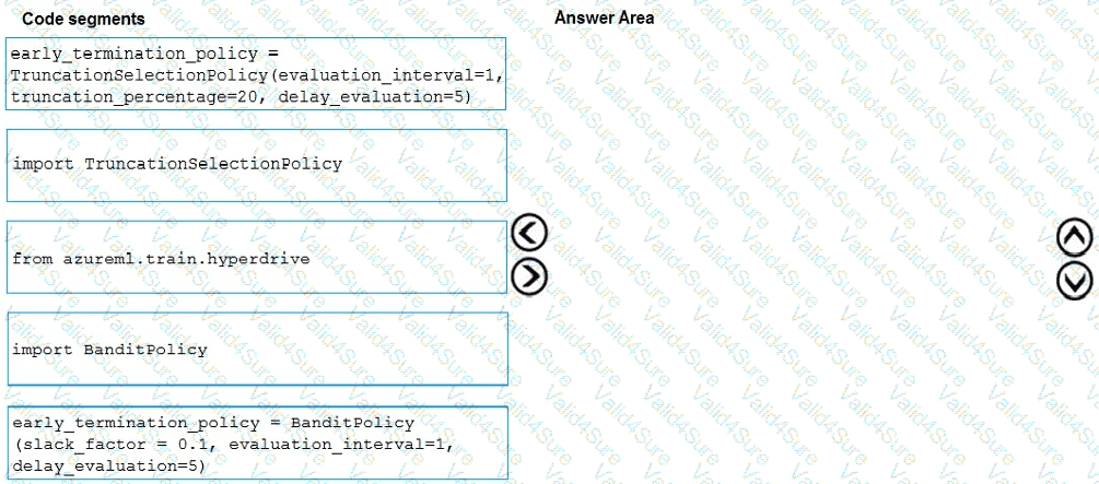 Which three code segments should you use to develop the solution? To answer, move the appropriate code segments from the list of code segments to the answer area and arrange them in the correct order.