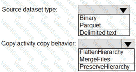 How should you configure the copy activity? To answer, select the appropriate options in the answer area.