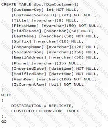 You plan to implement a star schema in pool1 and create a new table named DimCustomer by using the following code.