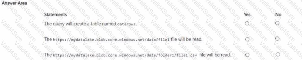 You have an Azure subscription that contains an Azure Synapse Analytics serverless SQL pool. You run the following query in the pool.