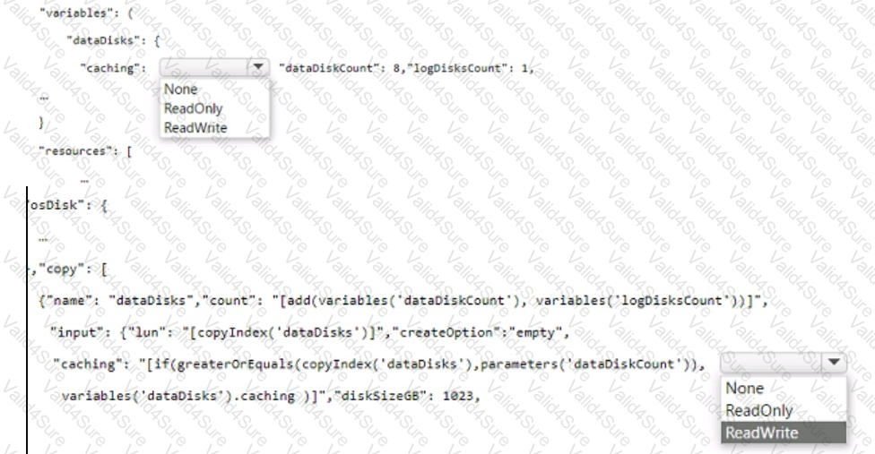 You need to use an Azure Resource Manager ARM) template to deploy an Azure virtual machine that will host a Microsoft SQL Server instance. The solution must maximize disk I/O