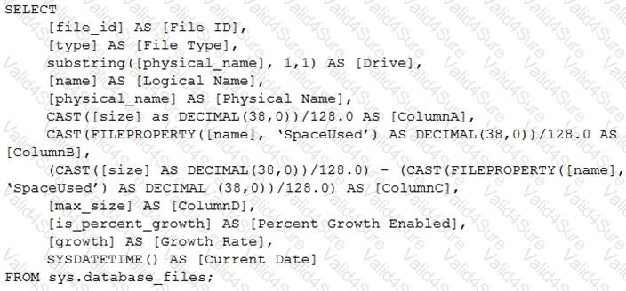 Which column returned by the query represents the free space in each file?