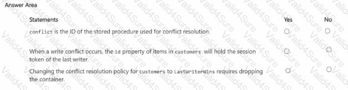 Vou have an Azure subscription. The subscription contains an Azure Cosmos DB for NoSQL account named account1 that hosts a container named Customers. Multi-region writes are allowed.