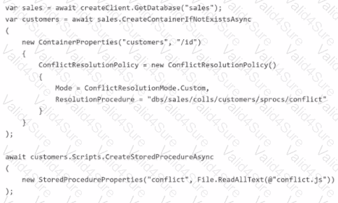You have an Azure Cosmos DB Core (SQL) API account that uses a custom conflict resolution policy. The account has a registered merge procedure that throws a runtime exception.