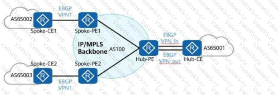 In the hub-spoke networking shown in the figure, the Hub-PE can be configured to allow repetitive local AS numbers for correct route transmission.