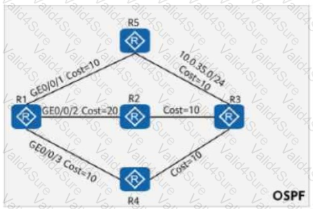 On the OSPF network shown in the figure, the cost values of links are marked. OSPF IP FRR is enabled on R1, and the maximum load-balancing 8 command is configured in the OSPF process. Which of the following is the cost value of the route 10.0.35.0/24 in the routing table of R1?