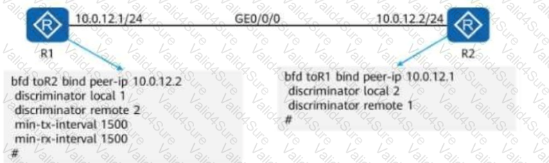 On the network shown in the figure, single-hop BFD is configured on R1 and R2.