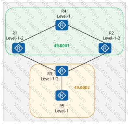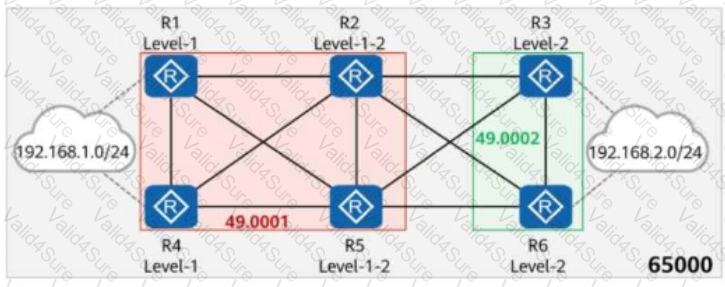 On the network shown in the figure, IS-IS runs on R1, R2, R4, and R5, and the area ID is 49.0001. IS-IS runs on R3 and R6, and the area ID is 49.0002. The import-route isis level-2 into level-1 command is configured on R2.