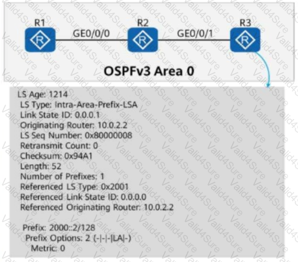 If you check detailed information about an LSA on R3, the command output shows that the LSA is generated by R2 and describes the IPv6 prefix address associated with the Router-LSA.