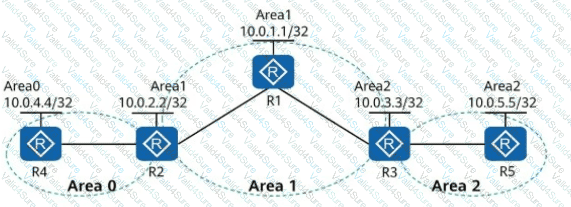 The Loopback0 addresses of R1 and R2 are advertised in Area 1, the Loopback0 address of R4 is advertised in Area 0, and the Loopback0 addresses of R3 and R5 are advertised in Area 2. Given this, which of the following IP addresses can ping each other?