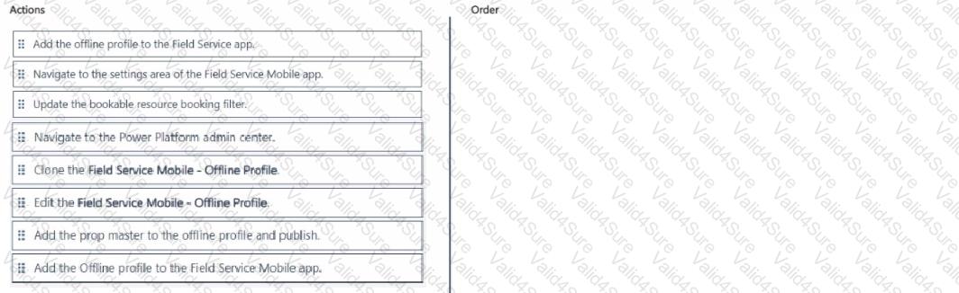 Which five actions should you perform in sequence? To answer, move the five appropriate actions from the list of actions to the answer area. Arrange the five appropriate actions in the Correct order.