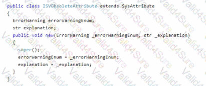 You must create a new attribute class in which to mark other classes in the ISV solution and their respective methods with the error levels Warning and Error. You have the following class: (Une numbers are included for reference only.)
