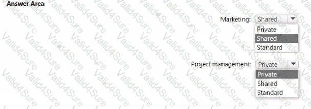 Which type of channel should you use for each department? To answer, select the appropriate options in the answer area.