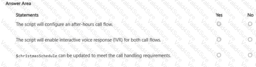 How should you complete the script? To answer, select the appropriate options in the answer area.