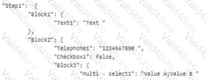 Refer to the exhibit below. What JSON code correctly represents the step in the OmniScript Structure panel shown?