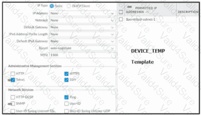 Based on the images below, and with no configuration inside the Template Stack itself, what access will the device permit on its management port?