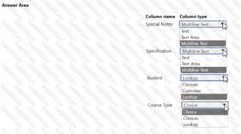 Which column types should you choose? To answer, select the appropriate options in the answer area.