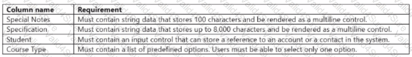 The company requires the following columns in a new custom table: