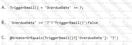 A Company plans to send escalation emails to all customers with overdue invoices. You are creating a Microsoft Power Automate flow to determine whether to send an escalation email.