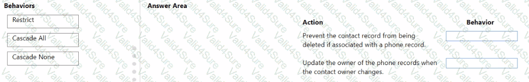 Which behavior should you use? To answer, drag the appropriate behaviors to the correct actions. Each behavior may be used once, more than once, or not at all. You may need to drag the split bar between panes or scroll to view content.