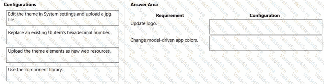 You are customizing a model-driven app for a company. You create a Theme template to ensure the company logo and colors are properly used within these apps.