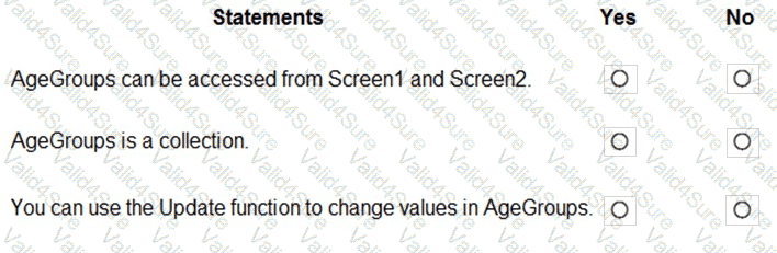 A company has a canvas app that includes the following screens: Screen1 and Screen2.