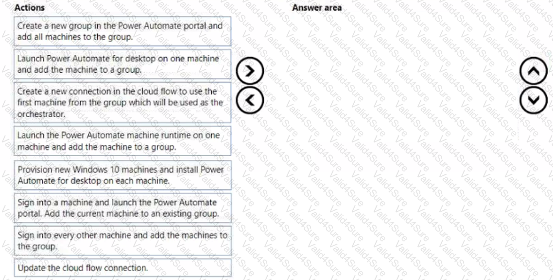 Which five actions should you perform in sequence? To answer, move the appropriate actions from the list of actions to the answer area and arrange them in the correct order.