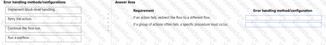 Which error handling method or configuration should use select? To answer, the appropriate error handling method or configuration to the requirement. Each error handling method or configuration may be used once, or not at all. You may need to drag the split bar between panes or scroll to view content.