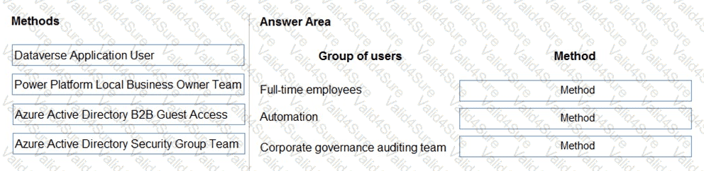 What should you recommend? To answer, drag the appropriate methods to the correct groups of users. Each method may be used once, more than once, or not at all. You may need to drag the split bar between panes or scroll to view content.