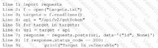 During an engagement, a penetration tester receives a list of target systems and wants to enumerate them for possible vulnerabilities. The tester finds the following script on the internet: