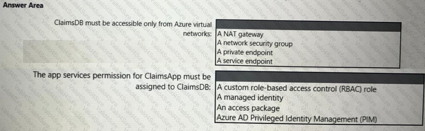 You need to recommend a solution to meet the requirements for connections to ClaimsDB.