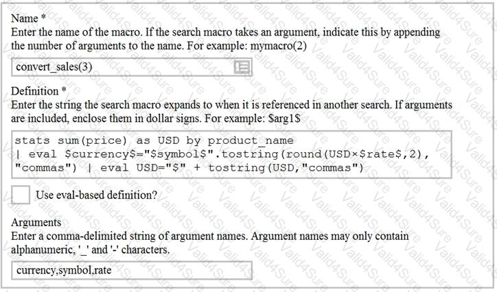 Based on the macro definition shown below, what is the correct way to execute the macro in a search string?