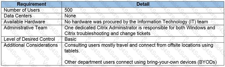 Scenario: A Citrix Architect is creating a conceptual architecture for a Citrix Virtual Apps and Desktops environment. Based on some initial discussions around the company’s business goals and objectives, the architect collected the information shown in the exhibit.
