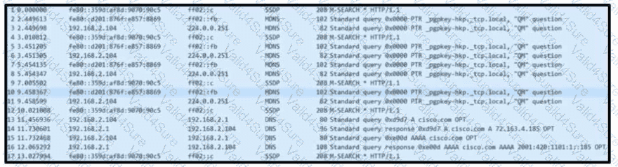 Refer to the exhibit. Based on the .pcap file, which DNS server is used to resolve cisco.com?