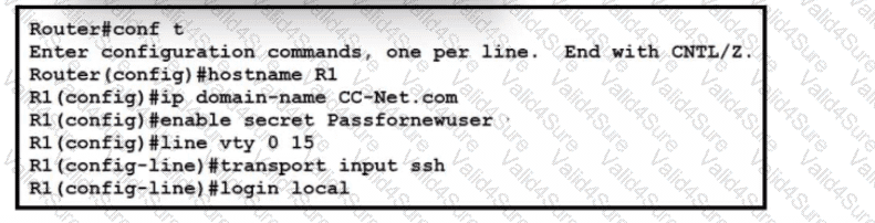 Refer to the exhibit. A network administrator is configuring a router for user access via SSH. The service-password encryption command has been issued. The configuration must meet these requirements: