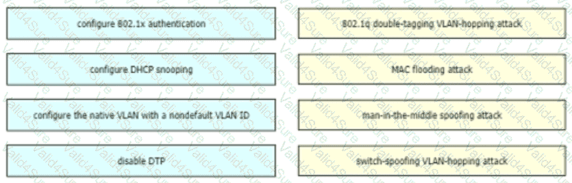 Drag and drop the attack-mitigation techniques from the left onto the Types of attack that they mitigate on the right.