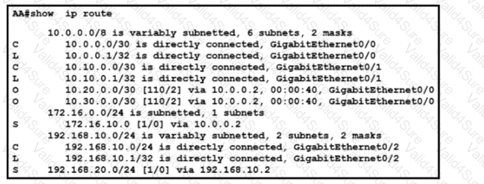 Refer to the exhibit. What is the administrative distance for the advertised prefix that includes the host IP address 192.168.20.1?