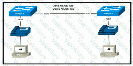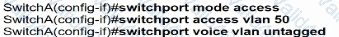 Switch A is newly configured. All VLANs are present in the VLAN database. The IP phone and PC A on Gi0/1 must be configured for the appropriate VLANs to establish connectivity between the PCs. Which command set fulfills the requirement?