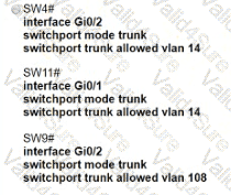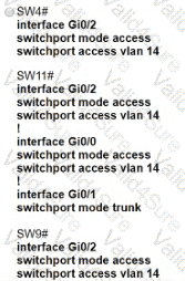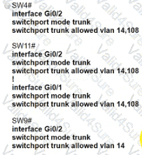 • The SW4 interface Gi0/1 and Gi0/0 on SW9 have been configured