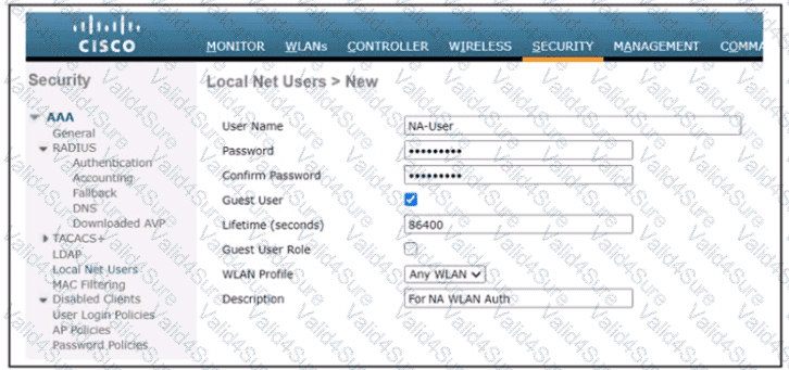 Wireless LAN access must be set up to force all clients from the NA WLAN to authenticate against the local database. The WLAN is configured for local EAP authentication. The time that users access the network must not be limited. Which action completes this configuration?