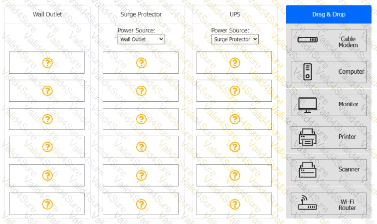 A customer recently experienced a power outage at a SOHO. The customer does not think the components are connected properly. A print job continued running for several minutes after the power failed, but the customer was not able to interact with the computer.