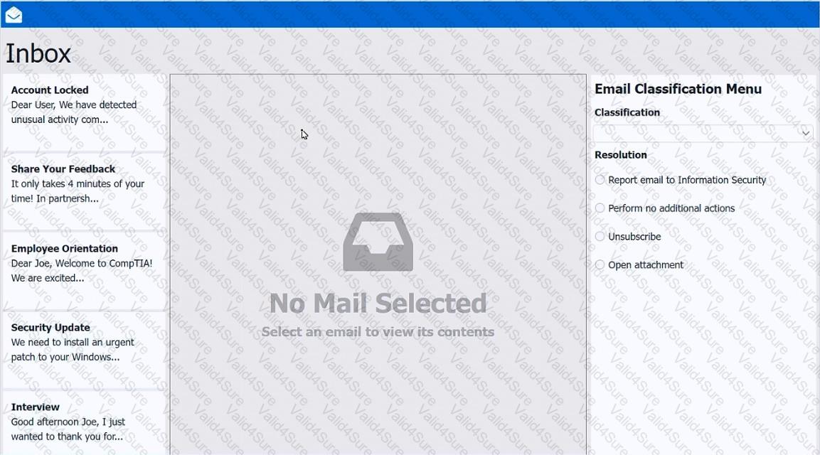 As a corporate technician, you are asked to evaluate several suspect email messages on a client ' s computer. Corporate policy requires the following: