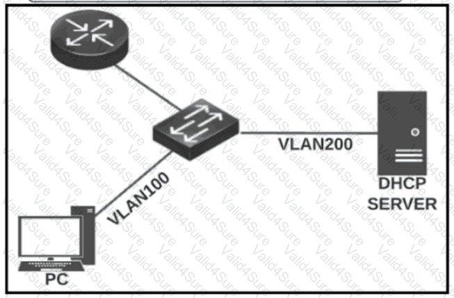 Refer to lhe exhibit. APC is configured to obtain an IP address automatically, but it receives an IP address only from the 169.254.0.0 subnet The DHCP server logs contained no DHCPDISCOVER message from the MAC address of the PC. Which action resolves the issue?