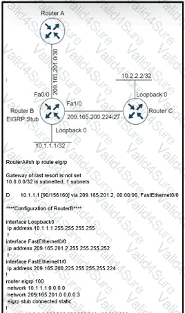 Refer to the exhibit. Not all connected and static routes of router B are received by router A even though EIGRP neighborship is established between the routers. Which configuration resolves the issue?